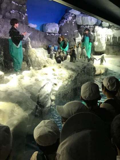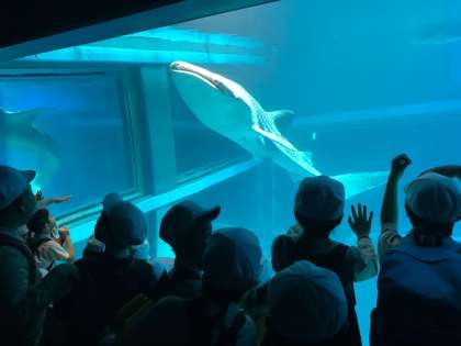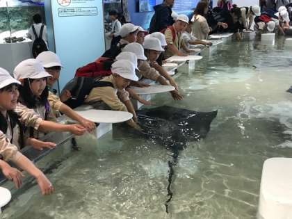 海遊館では、ジンベエザメやエイ、ペンギンなどたくさんの生き物を見たり、マダラエイやサンゴトラザメを触ったりしました。子どもたちにとってとても楽しい時間となりました。