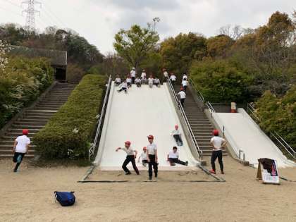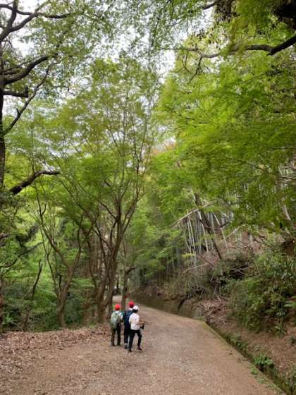 春らしいよい天候に恵まれる中、山道を班で協力して登りました。
