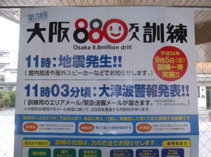 9月5日(金)、大阪府下一斉に地震や津波に備えた「大阪880万人訓練」が実施されました。大宮小学校でも警報に合わせて訓練をしました。2年生は、体育館にいましたが、授業を一時ストップ。みんな整列して、先生の話をしっかりと聞けました。3年生は…。