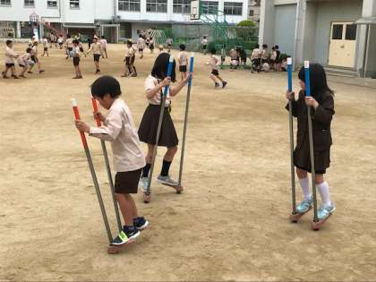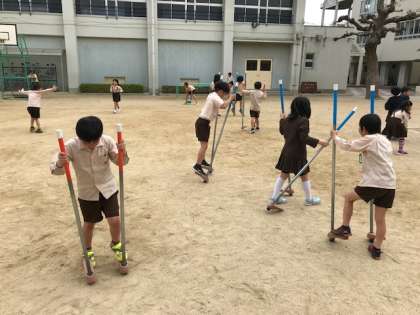 休み時間や昼休みに、竹馬をして過ごす子どもが多く見られました。何度も挑戦し、少しずつ上手になっているのがとてもうれしいです。これからも体育や休み時間に、楽しく体を動かしてほしいです。