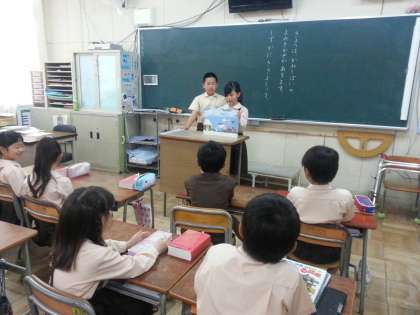 4月23日は、「子ども読書の日」です。そして5月12日までが「子ども読書週間」です。図書委員会では朝の読書タイムに低学年の教室を回って、読み聞かせをしました。1.2年生は、真剣に聞いています。