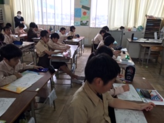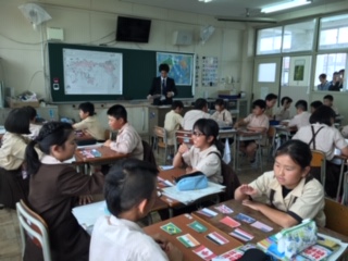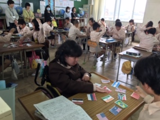 世界のいろいろな国の国旗に興味関心を持たせるため、国旗のカード取りから授業をスタート。それぞれの国の特徴、良さを見つけながら、世界の国々を回るプランを自分たちで考えました。