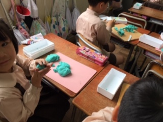 粘土で好きな動物を作りました。一人一人の思いがつまった動物達です!