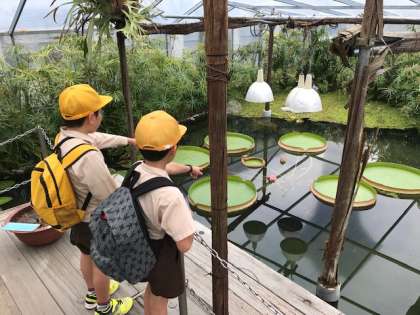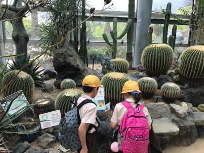 咲くやこの花館では、グループに別れて食虫植物やオオオニバス、サボテンなど色々な植物を見学しました。