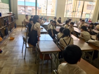 半分に分かれて互いの歌を聴き合いました。友達の良いところを見つけ発表しました。自分では気付いていないところをほめられると、ちょっぴり恥ずかしいですが、うれしいですね!