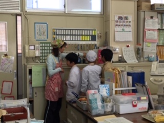 昼の放送で、今日の献立について話しています。委員会活動にも慣れてきた5年生。日を追うごとに放送も上手になってきました!