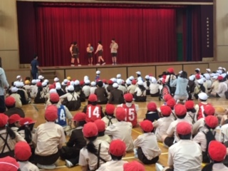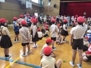 今日は、たてわり班で、ボール回しをしました。集会委員会児童がまず見本を示しました。「ドロドロ」と言っている間は、各班でボールを回します。「ドッカーン!」と言った時ボールを持っている人がアウトになります。