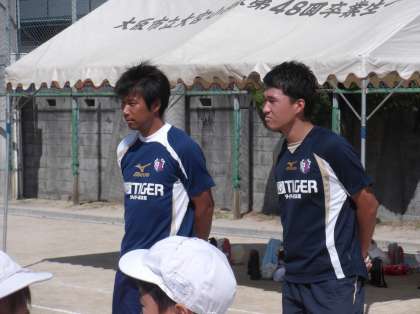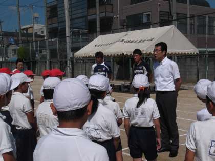9月9日(火)、久しぶりの快晴。運動場は朝から暑く影もく、まさに雲一つない秋空の下、大阪セレッソからコーチをお迎えして、「夢・授業」を実施しました。