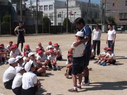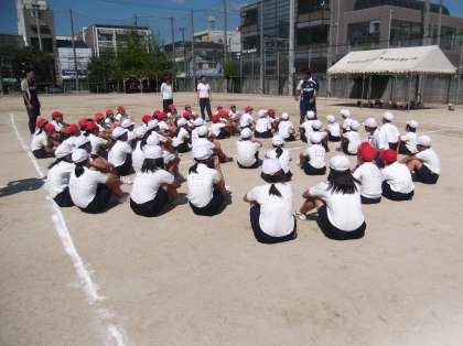 1回目の今日は6年生が対象です。代表児童のあいさつの後、早速練習が始まりました。ユニークな質問もあり、たのしく準備運動が終わりました。