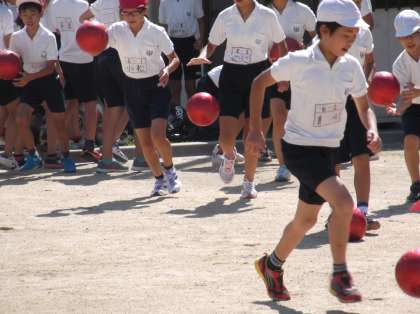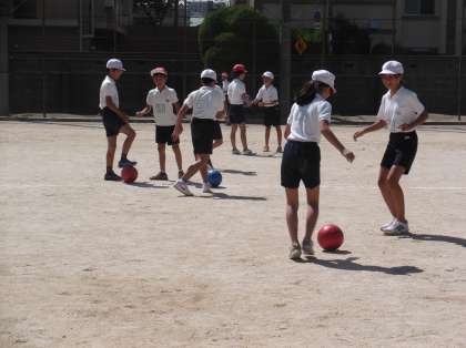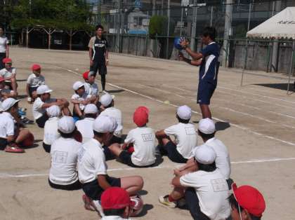 ボールを使っての練習。ポイントをいくつか教えていただきました。大切なのは「笑顔」だと言っておられたのが印象的です。