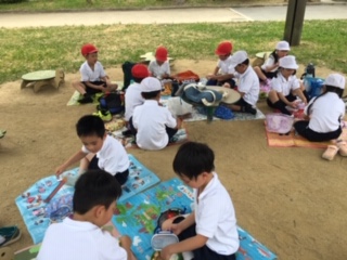 たくさん遊んだ後は、お待ちかねのお弁当タイム。お弁当やおやつを見せ合い、おしゃべりを楽しみながらゆっくり食べました。