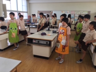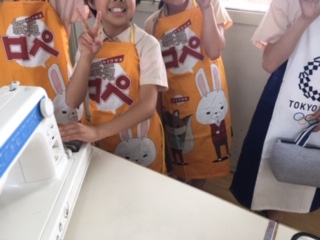 ミシンのちょっとした不具合が、よくあります。その時、すぐに対応してくださったので、待つ時間のロスがなく、ほとんどの子がエプロンを仕上げることができました。このエプロンは、中学生になっても使うようです。