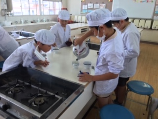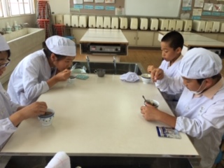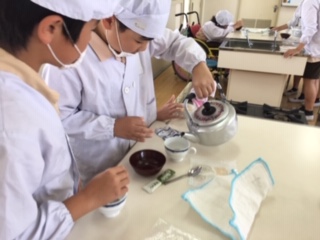 「お湯を沸かそう」と、やかんで分量をはかり、お湯を沸かしてスープやお茶などを味わいました。やけどなどをしないように慎重に火ややかんを扱いました。スープは、とても美味しかったようです!