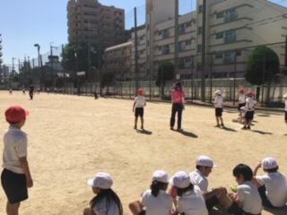 50m走とソフトボール投げの記録をとりました。1年生の時よりも伸びています!