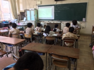 わり算の文章問題を、3つのクラスに分かれて学習しています。同じ数ずつ、等分に分ける時の式や答えの求め方を考え、速くできる方法を見つけていきました。わり算の問題作りや、練習問題などにも取り組みました。