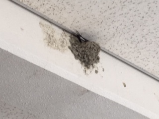 ピロティに作っていた巣から親鳥の姿が見えました。卵を産んでひなに餌をやっているのかな?水やりに来ていた2年生が教えてくれました。
