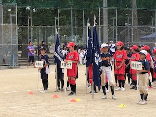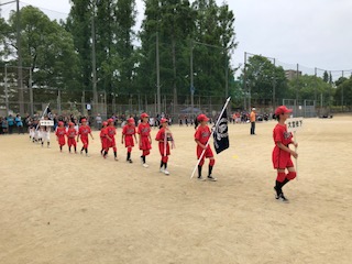 昨日旭グラウンドで子供会主催のキックベースボール、ソフトボール大会が開催されました。本校は、キックベースボールの試合に出場しました。昨年度は準優勝でした。