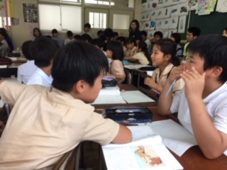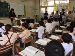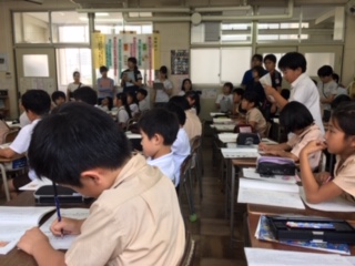 5時間目、4年2組で研究授業を行いました。説明文「ヤドカリとイソギンチャク」の本論部分の3つの問いと答えについて読み取りました。書かれている内容とともに、説明の仕方について比べ、自分が説明文を書く際には、どんな書き方をすれば良いかを考えました。普段から音読や一人学びがしっかりできていて、どの子も内容はほとんど頭に入っていました。筆者の書き方の工夫について、これからも読み取りの際に考えていきます。