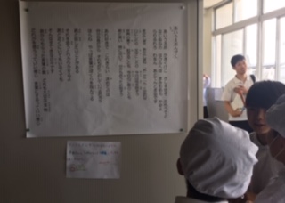 階段の踊り場に貼ってある「あいうえおんがく」の歌詞。小さい声で歌ってくれました。