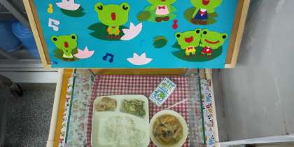 今日の献立は、鶏肉のおろしじょうゆかけ、みそ汁、野菜いため、ごはん、牛乳でした。暑い日にもさっぱりと食べやすいように、鶏肉の大根おろしにはゆず果汁を加えました。「ピーマンが苦手」と言っていた子もキャベツとツナと一緒に炒めると「食べれた」と言っていました。苦手なものも調理の仕方で食べやすくなるようです。