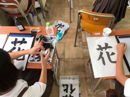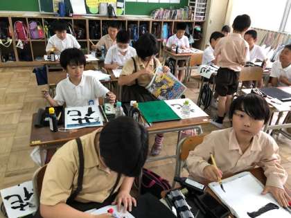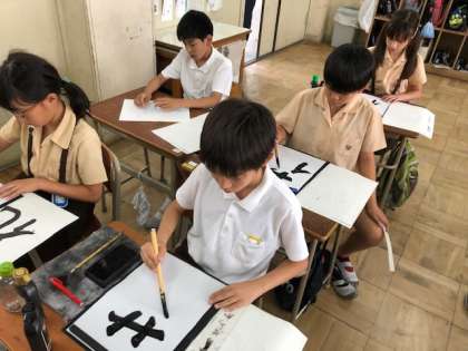 道具の置き方、筆の持ち方から確認し、集中して取り組みました。