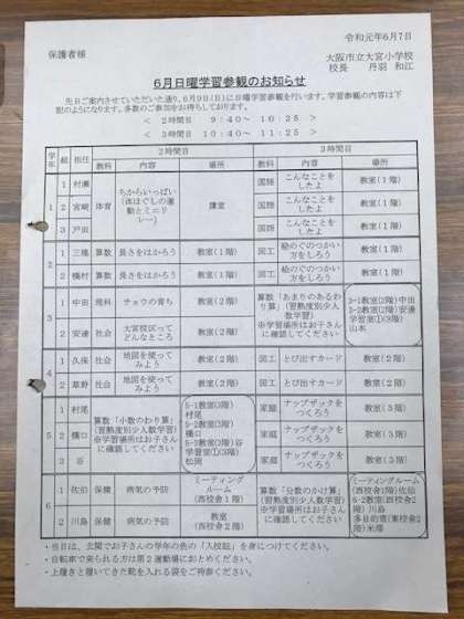 6月9日(日)は、日曜学習参観です。2時間目が9時40分から、3時間目が10時40分からです。多数の参加をお待ちしています。