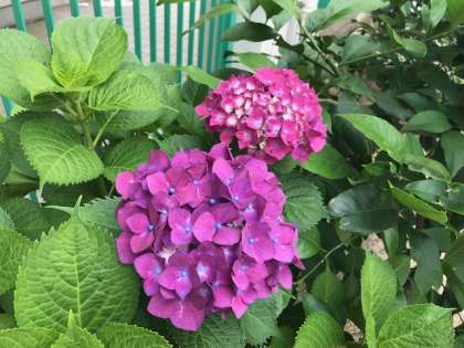 ビオトープには、鮮やかな色をした紫陽花がきれいに咲いています。