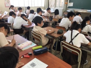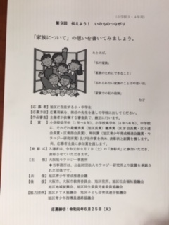 作文を書きました。お家の人のこと、エピソードなどを思い出して書いていました。旭区では、全小中学校でモラロジー協会主催の作文コンクールに応募しています。優秀作文は、9月に区民ホールで表彰されます。