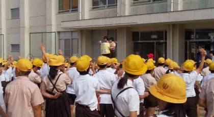 今日の児童朝会で、給食委員会からピッカピカ週間への取り組みの説明が行われました。