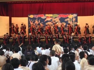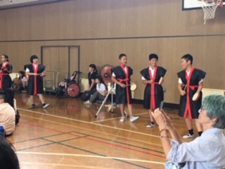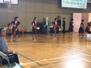 5年生が、ワークショップで教えていただいたエイサーを披露しました。短い時間によく覚え、かっこよく踊りました!