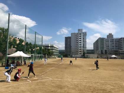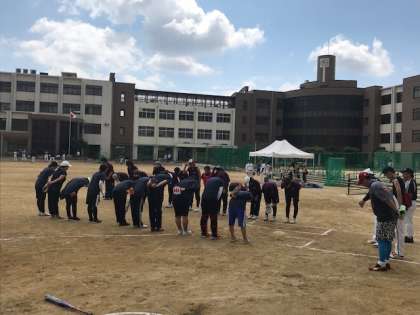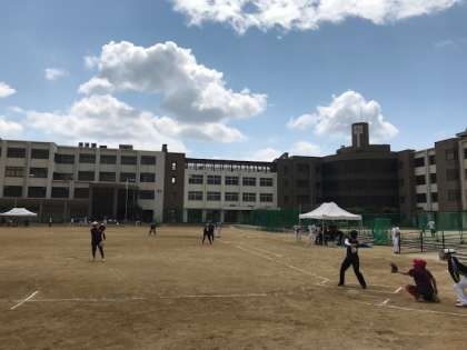 女子は、旭陽中学校と対戦しました。楽しくソフトボールをプレーする中で、PTAの親善が図られました。