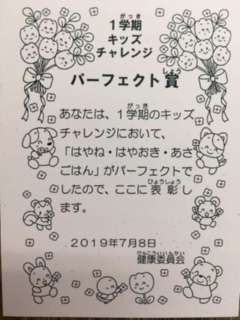 月曜日の全校朝会で、健康委員会から99人に渡された表彰状です。 2学期も実施します。頑張りましょう!