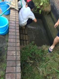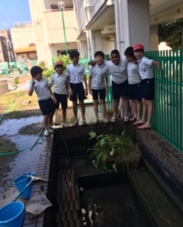 2時間ほどかけて、池の水はきれいになりました!ドジョウが15匹もいました!残念ながらカメは、いませんでした。6年生の子ども達、よく働きました!ヤゴやタイコムシなど、虫に詳しい子、ドジョウを捕まえるのが上手な子など、普段見られないステキな姿を発見できました!ありがとう!!