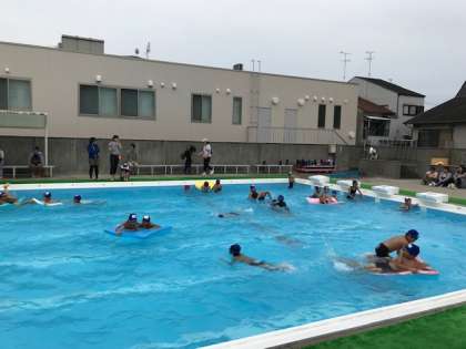 休みの日に、友だちと一緒に学校のプールに入り、自由に遊ぶ時間は、とても楽しそうでした。