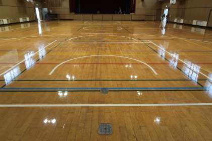 講堂の床がきれいに保たれているのは、このワックスがけのおかげでもあるのです。