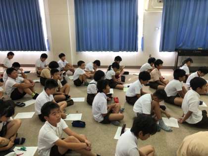 今日は林間学習に向けての説明会を学年合同で行いました。