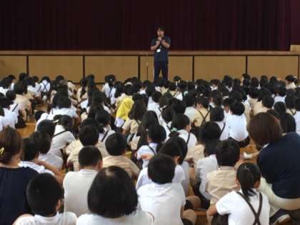 校長先生から、?普段できないことに進んで挑戦しましょう。?いろいろな行事に、感謝の気持ちをもって参加しましょう。?始業式に元気な姿で会いましょうと3つの話がありました。生活指導部長からは、大切な命を自分で守るために「どこに・誰と・何時に帰ってくるか」必ず伝えてからでかけましょう。そして、時間を意識して過ごしましょうと話がありました。長い夏休み、しっかりと意識し、安全に楽しく過ごしましょう。