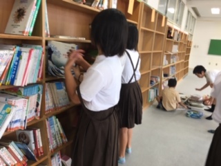 夏休み中に図書室の改装工事を行います。朝4年生と6年生がボランティアで本を出す作業を手伝ってくれました!ありがとう!!