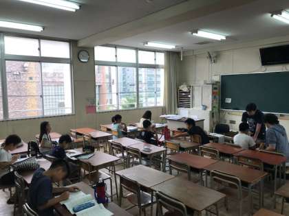 夏休みに入りましたが、教室では机に向かい集中して宿題に取り組む姿がたくさん見られました。努力は嘘をつきません。みんなでがんばろう。それが必ず力となります。