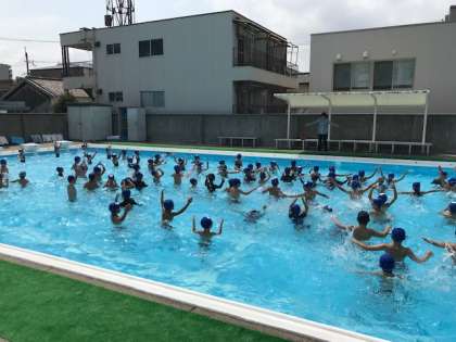 昨日は、雨天のために中止となりましたが、今日は、子どもたちのにぎやかな声がプールに戻ってきました。29日までプール指導があります。