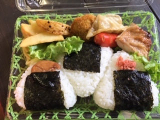 朝早かったので、おなかがすきました。おにぎりをほおばります!