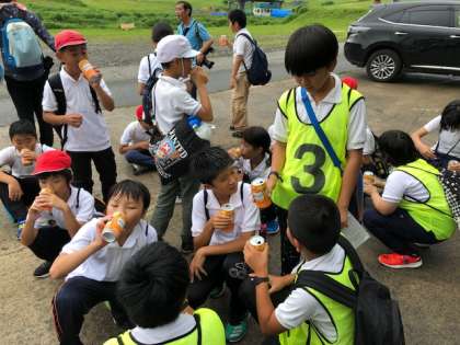 ネイチャービンゴのあと、おやつにジュースを飲みました。