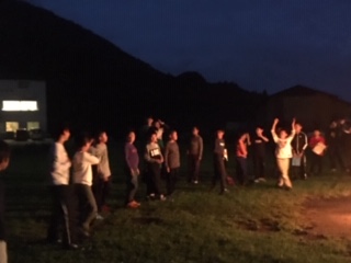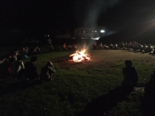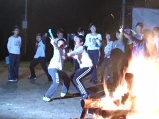 先生達からのゲーム「猛獣狩りに行こうよ」「無言で誕生日順に並ぼう」「落ちた落ちた」「やおやさんのお店」などをして楽しく盛り上がりました。ファイヤの炎が燃え盛るように、子ども達の心の中にも思い出の炎がともっているようです。最後に静かに今日1日を振り返りました。
