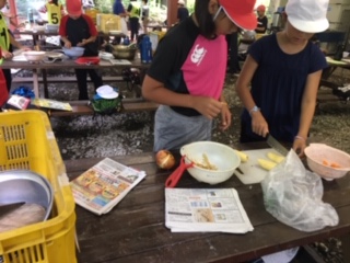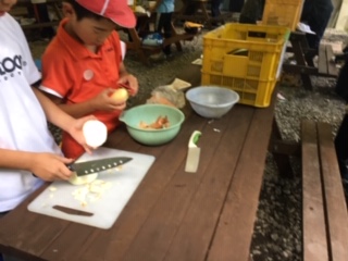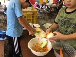 野菜を切る担当の子達。昨年ふれあいサマーデーでの練習が生きています!
