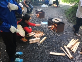 一旦薪に火がついたと思っても、消えてしまうこともあり、何度も何度も挑戦しました!ようやく炎が大きくなってきました。