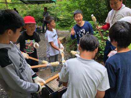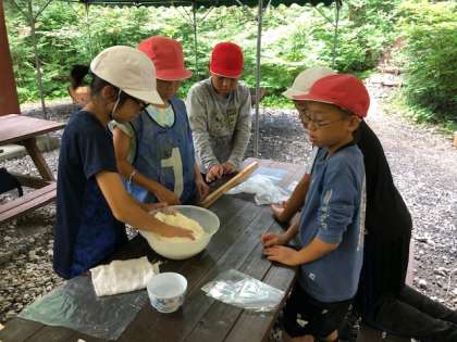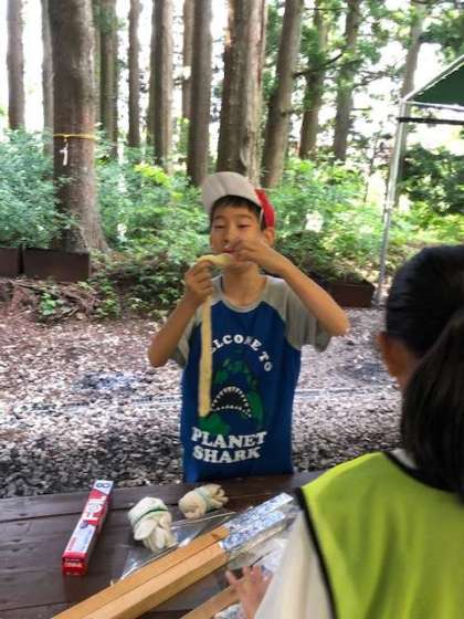 棒焼きパンでは生地をこねる人と棒にアルミホイルを巻きつける人に分かれて作業をしました。