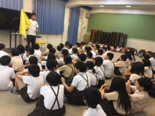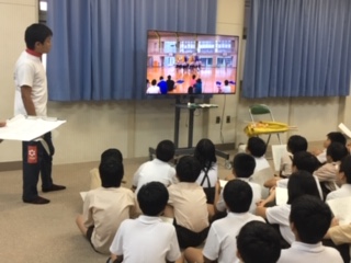 運動会で取り組む団体演技のオリエンテーションを行いました。フラッグを使った集団行動、集団交差などに初挑戦です。手本のビデオを観て、「難しそうだけどやりたい!」と意欲的です。みんなの心を一つにして、小学校最後の運動会を「やりきった」と言える思い出いっぱいのものとなるようにしていきます。