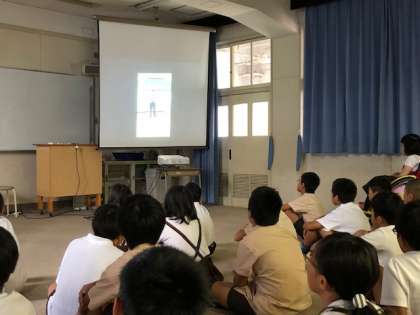 今日は多目的室でエイサー「ダイナミック琉球」の動きを、映像を使って確認しました。