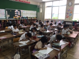 けさは、児童集会がなかったので、学級で朝学習や読書に取り組んだりしていました。校歌の練習をする場面もありました。歌詞を見ずに大きな声で歌うことができています。