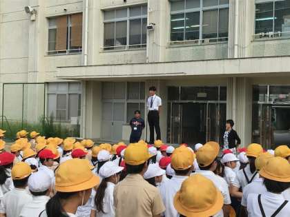 全校朝会で、教育実習生の紹介がありました。母校での教育実習です。たくさん話をし、様々なことを教えていただきましょう。